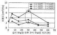 도 13a는 실시예에 따른 박막 트랜지스터 디바이스의 이동도의 건식 어닐링 시간 의존성을 도시하는 그래프이다.