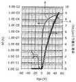 도 4e는 비교 예시로서 박막 트랜지스터 디바이스의 이동도 및 드레인 전류의 게이트 전압 의존성을 도시하는 그래프이다.