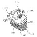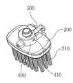 헤드부(200)는 도 4에 도시한 바와 같이, 손잡이 헤드(120)에 배치되어 식모된 칫솔모(210)를 이용하여 양치질을 하는 부분으로, 저면에 칫솔모(210)가 식모되고, 상면에 회전축(220)이 마련되며, 상기 회전축(220)은 틸팅부재(400)에 자유회전 가능하게 장착된다.4, the