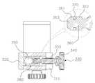 이때, 상기 고정부조절나사(330)의 제 3 걸림구(360)에 게재되는 한쌍의 제 3 고정핀(370)은 도 8 의 도시된 고정블럭(380)의 몸체(382) 상부에 형성된 한쌍의 제 3 고정핀 삽입공(385)에 각각 삽입된다.At this time, a pair of third fixing pins 370 disposed on the