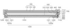 여기서, 램프(510)로 냉음극 형광 램프(Cold Cathode Fluorescent Lamp; CCFL)를 사용하는 것이 바람직하다. 물론 램프(510)로 외부 전극 형광 램프(External Electrode Fluorescent Lamp; EEFL)를 사용할 수도 있다.  물론 이에  한정되지 않고, 상기 램프 유닛(500)은 적어도 하나의 베이스 판과, 베이스 판 각각에 실장된 복수의 LED를 구비할 수도 있다.  도 1에서는 상기 램프(510)가 표시 모듈(2000)의 장축 방향으로 배치되었다. 이에 한정되지 않고, 상기 램프(510)는 표시 모듈(2000)의 단축 방향으로 배치될 수 있다.Here, it is preferable to use a cold cathode fluorescent lamp (CCFL) as the