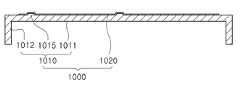 도 10의 변형예에서와 같이 몸체부(1010)의 바닥판(1011)에 관통홀(1014)을 형성하고, 상기 관통홀(1014)에 접지 금속 판(1021)을 삽입시켜 접지 금속부(1020)를 갖는 하부 수납 부재(1000)를 제작할 수 있다. 이때, 관통홀(1014)의 내측벽과 접지 금속 판(1021)의 외측벽(상기 관통홀(1014)의 내측벽면에 접한 벽면)에는 요철 패턴이 마련되는 것이 효과적이다. 이를 통해 접지 금속 판(1021)을 관통홀(1014) 내측에서 고정시킬 수 있다. 또한, 상술한 접착제등의 고정부재를 더 구비하여 접지 금속 판(1021)이 관통홀(1014)에서 떨어져 나가는 것을 방지할 수 있다.10, a through