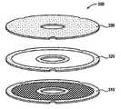 전위차계(potentiometric) 원리에 따라서 일례의 환형 터치 센서가 동작하여, 사용자의 제스처를 전자 신호로 변환한다.  도 3A를 참조하면, 바닥 기판(310)은 전압이 공급되는 고도전성의 트레이스의 미세 그리드(grid)를 포함한다.  바닥 기판(310) 위에 플렉시블 최상부 기판(330)이 배치되며, 여기서, 스페이서층(320)만큼 이격된다.  스페이서층(320)은 사용자가 터치하여 바닥 기판(310)과의 접촉으로 편향되는 때를 제외하고는, 최상부 기판(330)의 하부면이 바닥 기판(310)을 접촉하지 않도록 방지할 수 있는 충분한 두께이다.  최상부 기판(330)은 그 하부면이 도전성이며, 바닥 기판(310) 상의 도전성 트레이스의 그리드와 접촉하게 되는 때에, 전압이 그 사이에서 통과된다.  통과된 전압은 일반적으로 사용자의 터치의 위치에 비례한다.  전압에 따라서 바닥 기판(310)의 어느 트레이스가 변화되는지를  변경시킴으로써, 또한, 최상부 기판(330)에 전달되는 전압을 복수 측정함으로써, 사용자의 제스처를 복호화하는데 충분한 정보가 얻어진다.  이러한 정보는 이후에 프로세서에 의해 처리되어, 사용자의 제스쳐를 나타내는 전기 신호를 제공한다.  예를 들어, 사용자가 최상부 기판을 터치하여 유지하다가, 또 다른 위치로 미끄러져 간 후에, 풀게 되면, 환형 터치 센서(300)는 사용자 제스쳐의 시작 위치, 경로, 속도, 통과 기간, 및 종료 위치를 제공하도록 복호화되는 일련의 전압 판독치를 캡쳐하게 된다.  마찬가지로, 사용자가 단지 특정 위치에서 최상부 기판을 가볍게 탭핑하면, 환형 터치 센서는 탭핑의 위치 및 기간을 제공하도록 복호화되는 일련의 전압 판독치를 캡쳐한다.An exemplary annular touch sensor operates according to a potentiometric principle to convert a user's gesture into an electronic signal. Referring to FIG. 3A, the
