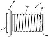 내부 본체 부재(40)의 외면(46)은 바람직하게 그 위에 형성된 나사 이빨 형태의 라체트(50)를 포함한다. 나사 이빨 형태의 라체트(50)는, 아래에서 더 상세히 설명되는 바와 같이, 내부 본체 부재(40)가 라체트 링(80)에 대해 회전될 때, 내부 본체 부재(40)가 라체트 링(80)에 대해 스크류-형태 부재로서 기능하고, 내부 본체 부재(40)와 외부 본체 부재(20) 사이의 축방향으로 충분한 축방향 힘이 가해질 때 내부 본체 부재(40)가 라체트 링(80)에 대해 움직이는 방식으로 이동을 허용하는 단면 모양을 포함하는 구조를 말한다. 축방향 이동은, 아래에서 더 상세히 설명되는 바와 같이, 내부 본체 부재(40) 및/또는 라체트 링(80) 중 적어도 어느 하나의 탄성 압축에 의해 용이해 질 수 있다. 나사 이빨 형태의 라체트는 축방향 이동과 회전 모두를 허용하는 한 어떠한 형태일 수 있다.The