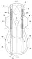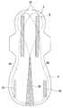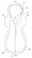제 2 수단으로서, 도 7에 나타난 바와 같이, 상기 각 흡수체 요소(4A, 4B)가 조합된 상태에서, 상기 이면 시트(2)와 흡수체(4) 사이로서 생리용 냅킨(1)의 뒤쪽 부분에, 흡수체 중앙에 길이방향을 따라서 탄성체(22)를 배설한다. 이 탄성체(22)의 신축력에 의해 생리용 냅킨(1)의 뒤쪽 부분이 둔부의 틈을 따라 변형하고, 둔부의 틈에 집어넣기 쉽게 할 수 있다.As shown in Fig. 7, as a second means, in a state where the