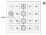 또한 현재 휴대용 전자 장치들 중 터치 패널을 구비하는 스마트 폰이나 타블릿 컴퓨터 등의 발달로 인하여 터치(touch) 방식, 드래그(drag) 방식을 혼용하는 기술이 대중화되고 있는 실정이다. 그러나 문자 입력 방식은 여전히 입력 버튼을 클릭하거나 키패드를 터치하는 방식을 그대로 유지하고 있어 시대의 흐름을 따라가지 못하고 있다. 따라서 이러한 휴대용 전자 장치에 적용이 가능한 한글 입력 장치 및 한글 입력 방법에 대한 연구의 필요성이 대두되고 있다.In addition, a touch technology and a drag technique have been popularized due to development of a smart phone or a tablet computer having a touch panel among portable electronic devices. However, the character input method still does not keep up with the trend of the times because it still maintains the way of clicking the input button or touching the keypad. Therefore, there is a need for research on a Korean input device and a Korean input method applicable to such portable electronic devices.