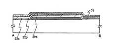 게이트 절연막(52a, 52b)은 각각, 두께 50 nm∼150 nm의 산화규소막, 질화규소막, 산화질화규소막, 또는 질화산화규소막으로 형성할 수 있다.  여기서는, 게이트 절연막(52a)으로서 질화규소막 또는 질화산화규소막을 형성하고, 게이트 절연막(52b)으로서 산화규소막 또는 산화질화규소막을 형성하여 적층하는 형태를 나타낸다.  또한, 게이트 절연막을 2층으로 하지 않고, 게이트 절연막을 산화규소막,  질화규소막, 산화질화규소막, 또는 질화산화규소막의 단층으로 형성할 수도 있다.The