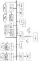 도 1은 다양한 버스(bus) 프로토콜들 및 그런 프로토콜들을 사용하는 전기적 기기들을 나타내는 종래 기술의 차량 통신 네트워크의 도식적인 블록도이다. 버스 프로토콜들은: (1) 차량 진단 전기 구성요소들을 위해 일반적으로 사용되는 J1850 및/또는 OBDII; (2) 엔진 제어, 변속기 제어, 실내 온도 제어(climate control)와 같은 다른 차량 시스템들을 위해 일반적으로 사용되고, 드라이브-바이-와이어(drive-by-wire) 전기 제어 유닛(ECU)을 위해서도 사용될 수 있는 인텔리버스(Intellibus); (3) 브레이킹 시스템들 및 엔진 관리 시스템들을 위해 일반적으로 사용되는 고속(high-speed) 계측 제어기 통신망(CAN, controller area network);(4) 안전 관련 전기 기기들을 위해 일반적으로 사용되는 분산 시스템 인터페이스(DSI, distributed system interface) 및/또는 보쉬-지멘스-테믹(BST, Bosch-Siemens-Temic); (5) 안전 중요한 전기 기기 어플리케이션들을 위해 일반적으로 사용되는 바이트플라이트(byteflight); (6) 인텔리전트(intelligent) 작동기들 및/또는 인텔리전트 센서들을 위해 일반적으로 사용되는 로컬(local) 내부 연결 네트워크(LIN, local interconnect network); (7) 창문들, 미러(mirror)들, 좌석들 및/또는 실내온도조절기와 같은 저속 전기 기기들을 위해 일반적으로 사용되는 저속 계측 제어기 통신망(CAN) 및/또는 모토로라 인터커넥터(MI, Motorola® interconnect); (8) 오디오 헤드 유닛, 증폭기, CD 플레이어, DVD 플레이어, 셀룰러 연결, 블루투스(Bluetooth) 연결, 주변 컴퓨터 연결들, 뒷좌석 엔터테인먼트(rear seat entertainment) 유닛들, 라디오, 디지털 스토리지(storage), 및/또는 GPS 네비게이션 시스템과 같은 차량 내의 멀티미디어 전기 기기들을 지원하는데 일반적으로 사용되는 모바일 미디어 링크(MML, mobile media link), 도메스틱 디지털 데이터(domestic digital data, D2B), 스마트와이어X(smartwireX), IEBus(inter-equipment bus), 및/또는 모스트(MOST, media oriented systems transport);(9) 천정형 영상표시기(heads up display), 기구 패널 디스플레이(instrument panel display)들, 다른 디지털 디스플레이들, 운전자 지원 디지털 비디오 카메라(driver assist digital video camera)들을 지원하기 위해 일반적으로 사용되는 저전압 차동 신호(LVDS, Low-Voltage Differential Signaling), 및 (10) 안전 중요 특성들 및/또는 바이-와이어(by-wire) 어플리케이션들을 위해 사용될 수 있는 플렉스레이(FlexRay)를 포함한다.1 is a schematic block diagram of a prior art vehicular communications network illustrating various bus protocols and electrical devices using such protocols. Bus protocols are: (1) J1850 and / or OBDII commonly used for vehicle diagnostic electrical components; (2) can be used for other vehicle systems such as engine control, transmission control, climate control, and also for drive-by-wire electrical control units (ECUs) Intellibus; (3) a high-speed controller area network (CAN) commonly used for braking systems and engine management systems; (4) a distributed system interface commonly used for safety-related electrical equipment DSI, distributed system interface) and / or Bosch-Siemens -Temic (BST, Bosch-Siemens-Temic); (5) Safety Byteflight, commonly used for critical electrical appliance applications; (6) a local interconnect network (LIN) commonly used for intelligent actuators and / or intelligent sensors; (7) A low-speed instrumentation control network (CAN) and / or Motorola interconnector (MI, Motorola® interconnect, etc.) commonly used for low-speed electrical appliances such as windows, mirrors, seats and / ); (8) audio head units, amplifiers, CD players, DVD players, cellular connections, Bluetooth connections, peripheral computer connections, rear seat entertainment units, radio, digital storage, and / Mobile multimedia links (MML), domestic digital data (D2B), smartwireX, and interbroadband (IEBus), which are commonly used to support multimedia electrical devices in vehicles such as GPS navigation systems, equipment buses, and / or MOSTs (9) ceiling up displays, instrument panel displays, other digital displays, operator-supported digital video cameras low-voltage differential signaling (LVDS), which is commonly used to support driver assist digital video cameras (10) FlexRay that can be used for safety critical features and / or by-wire applications.