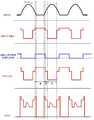 도 6 및 도 7은 도 4의 실시예에 따른 플리커 저감 기능을 갖는 교류 다이렉트 방식 LED 구동회로의 도 5와 다른 형태로 적용된 전류 파형을 보인 도면
