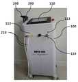 또한, 상기 출력조절모듈(132)에서 피부미용의 경우에는 70V, 통증 및 염증의 완화의 경우에는 80V, 악성 염증의 경우에는 98V를 선택적으로 걸어줄 수 있는 것이다. 도 1에 도시되어 있는 사진의 정면부분의 중앙에 있는 노브(114)는 전압을 70V, 80V, 98V의 3단계 중에서 각각 10V~18V에 해당하는 전압크기를 세분해서 조절하는 볼륨조절용 다이얼인데, 예를 들어, 시술자가 70V와 80V 사이에서 강, 중, 약의 3단계로 세분해서 73V, 76V, 79V로 조절할 수 있고 각 단계에서 3단계로 조절하는 볼륨조절용 다이얼인 것이다. 이는 하나의 예시에 불과하며, 상기 강, 중, 약의 3단계 전압의 크기 조절은 시술자의 편의에 따라 변동될 수 있는 것이다.In addition, the output regulation module 132 can selectively apply 70 V for skin-beauty, 80 V for pain and inflammation, and 98 V for malignant inflammation. The