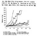이러한 분석평가의 한 예는 GT3TKB 종양 세포와 같은 살아있는 암 세포를 가지고 다음의 방식으로 수행한다: 샘플을 1M NAOH 37℃에서 분해가 완전히 끝나는 것이 관찰 될 때까지 분해한다. 이후 상기 용액을 1M HCI로 중화한다. 상기 분해된 약 200㎕의 다양한 농도의 샘플 생성물을 96-웰(well) 조직 배양판에 두고 104/웰 밀도로 인간 위암 세포(GT3TIB) 파종하였다. 상기 분해된 샘플 생성물을 GT3TKB 세포로 48시간 동안 배양하였다. 상기 분석 평가 결과를 조직-배양된 웰에서의 분해된 샘플의 농도에 대한 상대적 성장율(%)로 도시하였다. 또한, 피하 이식된 부분에서 염증 또는 현저한 자극을 일으키지 않음을 확인하기 위하여 본원 발명의 중합체 그리고 본원 발명의 제제를공지된 생체 테스트( 흰쥐에 피하 이식)로 평가하였다.One example of such assay evaluation is performed with live cancer cells, such as GT3TKB tumor cells, in the following manner: The sample is digested at 1 M NaOH at 37 DEG C until complete degradation is observed. The solution is then neutralized with 1 M HCI. A sample of various concentrations of about 200 [mu] l of the digested sample was placed on a 96-well tissue culture plate and inoculated with human gastric cancer cells (GT3TIB) at a density of 104 / well. The digested sample products were incubated with GT3TKB cells for 48 hours. The analytical evaluation results are shown as relative growth rates (%) relative to the concentration of the degraded samples in the tissue-cultured wells. In addition, the polymers of the present invention and the agents of the present invention were evaluated by known biotests (subcutaneous transplantation in rats) to confirm that they did not cause inflammation or significant irritation in the subcutaneously implanted portions.