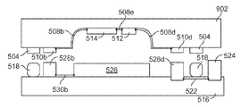 도 8b에서, 백플레이트(902)는 기판(516)에 접합된다. 본딩 사이트들(904)은 하부 밀봉 링에 상부 밀봉 링을 접합시킨다. 도 8b에 도시된 구현에서, 백플레이트(902) 및 기판(516) 둘다는 접합될 수 있는 밀봉 링 컴포넌트들을 가진다. 일부 구현들에서, 백플레이트(902)는 밀봉 링 컴포넌트를 포함하지 않을 수 있다. 밀봉 링(518)은 밀봉 링 본딩 사이트(904)가 백플레이트(902)의 면 상에 있도록 전체적으로 기판(516)상에 있을 수 있다. 밀봉 링 본딩은 도 5에서 앞서 설명된 기술들을 사용하여 달성될 수 있다. 일단 본딩되면, 시일은 디바이스에, 제어된 챔버를 형성한다. 일부 구현들에서, 형성된 시일은 기밀 시일일 수 있다.In Fig. 8B, the