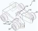 도 3은 도 1에 도시된 주행로봇을 확대하여 사시도로서, 주행로봇(20)에는 연결수단(110)의 리프팅 플레이트(130)에 올려지면서 승강 피스톤 로드(124)에 끼워질 수 있도록 연결공(140)이 형성된다.3 is an enlarged perspective view of the traveling robot shown in Fig. 1, and the traveling