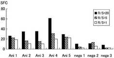 Figure 8 shows CTL stimulated with MPHOSPH 1-A02-9-282 (SEQ ID NO: 9), MPHOSPH1-A02-9-638 (SEQ ID NO: 10) and MPHOSPH1-A02-10-1714 (SEQ ID NO: 11) Shows the establishment of a line. The cells in the positive wells are expanded and the result is MPHOSPH l-A02-9-282-pulsed target (A), PHOSPHl-A02-9-638-pulsed target, compared to activity against the peptide unpulsed target. (B) or MPHOSPH 1-A02-10-1714-Pulsed target (C) shows that a CTL strain with high CTL activity specifically was established. R stands for Responder: CTL note, S stands for Stimulator: Peptide-pulsed T2 (lxlO4/well).
