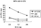 3A shows the establishment of CTL clones stimulated with MPHOSPH1-A24-9-278. (SEQ ID NO: 7). This CTL clone shows a specific high CTL activity against target cells (A24LCL) pulsed with MPHOSPH 1-A24-9-278, but significant CTL activity against the same target cells (A24LCL) that were not pulsed with a peptide. Did not give. 3B shows the establishment of a CTL clone stimulated by MPHOSPH1-A24-10-278. This CTL clone shows a specific high CTL activity against target cells (A24LCL) pulsed with MPHOSPH 1-A24-10-278, but significant CTL activity against the same target cells (A24LCL) that were not pulsed with a peptide. Did not give. R stands for Responder: CTL clone, S stands for Stimulator: Peptide-pulsed A24-LCL (lxlO4/well).