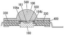 그래서, 복수 개의 발광 장치(100)를 1개의 배선판에 실장하여, 예를 들면 직렬 접속한 LED 유닛(발광 유닛)을 구성하는 것이 고려된다.  이 경우, 발광 장치(100)에서의 LED 칩(161)의 온도 상승을 억제하여 광출력의 고출력화를 도모하기 위하여, 배선판으로서 금속 베이스 인쇄 배선판을 사용하는 것이 고려된다.  이와 같은 LED 유닛의 제조 시에는, 발광 장치(100) 각각의 한 쌍의 리드부(330)를, 배선판의 금속 베이스 인쇄 배선판의 동박 패턴으로 이루어지는 배선 패턴에 납땜하면 된다.Thus, it is considered that a plurality of