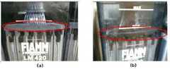 또한, 배터리 내부 상태를 복원 전과 복원 후를 비교하면 도 4에서 나타낸 바와 같이 뚜렷한 차이가 있다. 즉, 도 5의 (a)는 복원 전의 배터리의 전극상태를 나타낸 것이며, (b)는 복원 후의 상태를 나타낸 것인데, 복원 전의 전극에서는 황산염이 하얗게 부착되어 있음을 알 수 있으나, 복원 후의 전극에서는 이러한 황산염이 모두 제거되어 배터리의 상태가 상당부분 사용되기 이전의 상태로 회복되었음을 알 수 있다.In addition, when the internal state of the battery is compared before and after the restoration, there is a clear difference as shown in FIG. That is, FIG. 5A shows the electrode state of the battery before the restoration, and FIG. 5B shows the state after the restoration. It can be seen that the sulfate before the restoration has the whitish adhesion, It can be seen that all of the sulphate is removed and the state of the battery is restored to a state before the substantial use.