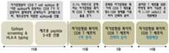 알고리즘을 통해 자가암항원의 CD8 T 세포 에피토프(epitope)들을 선별하였다. 암 환자의 혈액 내 존재하는 T 세포들이 어떤 CD8 T 세포의 에피토프에 반응하는지 확인하기 위해, 암 환자의 혈액으로부터 PBMC(peripheral blood mononuclear cell)를 분리하여 세척한 후, CTL 배지(RPMI1640 배지 + 4 mM L-글루타민 + 12.5 mM HEPES + 50 μM 2-메르캅토에탄올 + 3% 자가혈장)에 1×106 세포/ml로 현탁하고, 14 ml 튜브(round tube)에 1 ml씩 분주하였다. 알고리즘을 통해 분석하여 선별된 각 에피토프의 펩티드들(peptides)을 각 튜브에 1 μg/ml 농도로 첨가하여 CO2 인큐베이터에서 배양을 시작하였다. 배양 이틀째, 50 U/ml IL-2가 포함된 CTL 배지를 각 튜브에 1 ml씩 첨가하였다. 배양 7, 9, 11, 및 13일째 1 ml 배지를 제거한 후, 50 U/ml IL-2가 포함된 CTL 배지를 첨가하였다. 배양 14일째, 각 튜브에 RPMI1640 배지를 첨가하여 1400 rpm에서 5분간 원심분리 하여 세포를 3회 세척하였다. 세척된 세포에 1 ml CTL 배지를 현탁한 후, 동일한 펩티드를 5 μg/ml 농도로 첨가하여 배양하였다. 24시간 후, 각 튜브의 세포를 수거하여 항-CD8-PE-Cy5 및 항-4-1BB-PE 항체로 염색하여 유세포 분석하였으며, 4-1BB를 발현하는 CD8 T 세포의 비율을 분석함으로써, 어떤 펩티드에 반응하여 CD8 T 세포가 활성화 되었는지를 분석하였다. 도 2는 본 발명에 따른 에피토프 스크리닝 과정의 공정 흐름도를 나타낸 도면이다.The CD8 T cell epitopes of autologous cancer antigen were selected through an algorithm. PBMCs (peripheral blood mononuclear cells) were separated from the blood of cancer patients and washed in CTL medium (RPMI1640 medium + 4 mM L-glutamine + 12.5 mM HEPES + 50 μM 2-mercaptoethanol + 3% autologous plasma) at 1 × 106 cells / ml and dispensed in 1 ml each in a 14 ml round tube. The peptides of each epitope selected by the analysis were added to each tube at a concentration of 1 μg / ml and the culture was started in a CO2 incubator. On the second day of culture, 1 ml of CTL medium containing 50 U / ml IL-2 was added to each tube. On