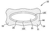 도 22는 흡수 코어가 쉘 안으로 쑥 들어간 본 발명의 흡수 용품의 옆에서 본 단면도.
