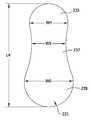 도 23, 도 23a 및 도 23b는 각각 상이한 쉘 모양을 가지는 본 발명의 흡수 용품의 한 실시태양의 상면도.