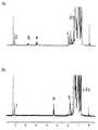 스펙트럼(A)에서 5 ppm에서 존재하는 올레핀(알릴) 양자(proton)는 스펙트럼(B)에서 나타나는 것 같이 안티-마르코브니코프 하이드로브롬화 후에 완전히 사라진다. 1,3,5-트리(2-메톡시이소프로필)벤젠(개시제 잔기)에 존재하는 방향족 양자는 내부 대조 표준을 제공한다. 그러므로, 개시제 단편 내의 세 개의 방향족 양자에 대한 PIB-CH2-CH2-CH2-Br의 말단 메틸렌 양자의 통합은 정량적인 기능기 정보를 제공한다. 알릴기 및/또는 이차 브롬의 완전한 부재는, 실질적으로 표적 안티-마르코브니코프 생성물 Ø-(PIB-CH2-CH2-CH2-Br)3로의 100% 전환이 이루어졌음을 나타낸다.The olefin (allyl) protons present in the spectrum (A) at 5 ppm completely disappear after the anti-Marconovic Hydrobromination as shown in the spectrum (B). The aromatic proton present in 1,3,5-tri (2-methoxyisopropyl) benzene (initiator residue) provides an internal control standard. Thus, the incorporation of both terminal methylenes of PIB-CH2 -CH2 -CH2 -Br to the three aromatic protons in the initiator fragment provides quantitative functional group information. Allyl group and / or a complete absence of the secondary bromine is substantially the target anti-represents a- (CH 2 -Br PIB-CH 2 -CH 2) 3 100% conversion is been made to Marco beuni Corp. product Ø-.