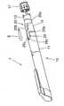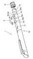 분배 메커니즘은 주사 가능한 조제품의 분배를 실행하고, 분배된 주사 가능한 조제품의 투여량은 투여량 조정 메커니즘에 의해 조정된다. 주사 가능한 조제품을 분배 또는 투여하도록, 분배 메커니즘은 예를 들어 주사 버튼의 형태로 하는 작동 요소(17)와, 플런저 로드에 의해 주사 버튼에 직접 또는 간접적으로 결합되는 플런저를 가질 수 있다.The dispensing mechanism performs dispensing of the injectable preparation and the dose of the dispensed injectable preparation is adjusted by a dose adjustment mechanism. To dispense or administer the injectable preparation, the dispensing mechanism may have a working