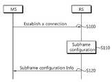 중계기는 중계기의 서브프레임 설정을 수행하고(S110), 서브프레임 설정 정보를 단말로 시그널링한다(S120). 예를 들어, 서브프레임 설정 정보는 아래 표와 같다.The repeater performs the subframe setting of the repeater (S110), and signals the subframe setting information to the terminal (S120). For example, the subframe setting information is shown in the following table.