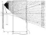도 4는 오목 렌즈의 원리를 개략적으로 보여주는 도면.4 is a view schematically showing the principle of a concave lens;