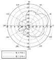 이와 같이 구성된 제1 안테나(110) 및 제2 안테나(120)는 도 2에 도시된 바와 같이, 제2 안테나(120)의 방사 패턴 이득이 수직 방향과 널 포인트 지점에서 더 높은 것을 확인할 수 있다. 따라서, 제2 안테나(120)는 수직방향 상공과 널포인트의 지점과의 근거리 통신을 담당하며 제1 안테나(110)는 원거리 통신을 담당한다.