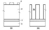 다음에, 포트리소그래피 공정을 사용해서 포토레지스트(4)를 패터닝한 후, 이방성 드라이 에칭에 의해 개공한다(오목부(Ka)). 이때의 포토레지스트(4) 및 드라이 에칭의 방법에 대해서는 이 종류의 제품에 적용되는 통상의 물(物) 또는 방법을 적용하면 좋다.Next, the