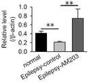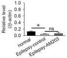 Figure 1d shows that miR-203 is significantly up-regulated in the hippocampus of chronic epileptic mice by real-time PCR. The expression of miR-203 was expressed relative to the expression level of mRNA encoding GAPDH (glyceraldehyde phosphate dehydrogenase). * P < 0.05. ns = not significant (not significant).