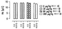 Figure 2 is a chart showing the hemoglobin concentration in Sprague Dawley rats in which the peptide ID was administered intravenously twice a day over 28 days. As shown in the graph, the hemoglobin concentration of the rats to which the peptides are not administered is the same as that of the rats to which the peptide ID is administered, indicating that the peptide ID is non-hematopoetic.