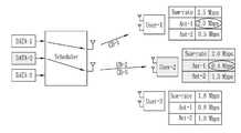 그러나, 만약 다중사용자 MIMO를 사용하게 되면, 서로 다른 송신 안테나에 실리는 신호를 서로 다른 사용자에게 전송되는 신호로 결정할 수도 있으므로, 이 경우에는 안테나 #1에는 User-1로 전송되는 신호를 싣고 안테나 #2에는 User-2로 전송되는 신호를 실어서, 총 3.5Mbps(2.0+1.5)의 전송 속도를 달성할 수 있다.However, if multi-user MIMO is used, a signal transmitted to different transmit antennas may be determined as a signal transmitted to different users. In this case, a signal transmitted to