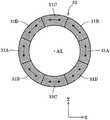 도 20은 4분할 편광 변환 소자(10f)를 이용하여 4분할 원주 방향 편광 윤대 조명을 실행할 때에 얻어지는 윤대 형상의 2차 광원(31)을 나타내는 도면,