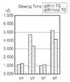 한편, 상기 출력 트랜스미션 게이트(20)는 복수개의 트랜스미션 스위치(TG1, TG2, TG3, TG4)를 가지는바, 복수개의 트랜스미션 스위치(TG1, TG2, TG3, TG4)가 가지는 저항성분으로 인해 슬루 레이트(SR)가 낮아져, 슬루잉 타임(slewing time)이 길어지는 문제점이 있다. 또한, 소스 드라이버(51)에 상기 출력 트랜스미션 게이트(20)가 포함되므로, 상기 소스 드라이버(51)를 가지는 디스플레이 구동장치의 레이아웃(layout) 면적이 증가한다는 문제점이 있다.The
