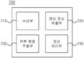 도 7을 참조하면, 본 발명에 따른 장치(700)는 수신부(710), 영상 정보 추출부(720), 변환 행렬 추출부(730), 및 영상 처리부(740)를 포함한다. 의료 영상 오버레이 장치(700)는 소프트웨어 프로그램 또는 코드의 형태로 제공되는 인스트럭션/커맨드에 의하여 도 1 및 도 2에 도시된 방법을 실행할 수 있다. 의료 영상 오버레이 장치(700)는 프로그램 또는 코드의 형태로 제공되는 인스트럭션/커맨드를 실행하는 적어도 하나 이상의 프로세서(도시되지 않음)를 포함할 수 있다. 도 7에 도시된 수신부(710), 영상 정보 추출부(720), 변환 행렬 추출부(730), 영상 처리부(740)는 장치(700) 내의 프로세서 내의 구성 요소로서 포함될 수 있다.7, the
