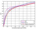 이는 높은 스펙트럼 효율의 경우 비협력 통신의 성능이 우수한 것을 알 수 있다. 또한, 적응적 협력 전송을 적용할 경우 협력 및 비협력 모드의 장점을 결합함으로써 성능이 향상된 것을 확인할 수 있다.It can be seen that the non-cooperative communication performance is excellent in the case of high spectral efficiency. In addition, when adaptive cooperative transmission is applied, it can be confirmed that the performance is improved by combining the advantages of cooperation and non-cooperative mode.