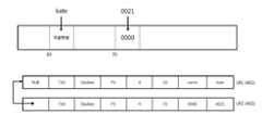 도 4에서, 먼저 데이터 페이지의 10번 오프셋 영역의 데이터가 「name」에서 「kate」로 바뀌는 경우, LR1 로그 레코드(401)가 생성될 수 있다.  그리고, 데이터 페이지의 31번 오프셋 영역의 데이터가 「0000」에서 「0021」로 바뀌는 경우, LR2 로그 레코드(402)가 생성될 수 있다.In Fig. 4, if the data in the