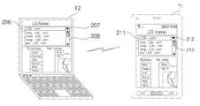 또한, 상기 목적을 달성하기 위한 본 발명의 일예에 따른 휴대 단말기 시스템은, 웹, 메신저, 이메일 또는 문서작업용 브라우저가 표시되고 있는 제1단말기; 상기 제1단말기가 전송한 상기 웹, 메신저, 이메일 또는 문서작업용 브라우저에 관한 정보를 포함하는 싱크 데이터를 수신하는 서버; 및 상기 서버가 수신한 싱크 데이터에 포함된 정보에 따라 상기 제1단말기에 표시되고 있는 웹, 메신저, 이메일 또는 문서작업용 브라우저를 디스플레이부에 표시하는 제2 단말기를 포함한다.According to another aspect of the present invention, there is provided a portable terminal system including a first terminal displaying a browser for a web, a messenger, an e-mail or a document work; A server for receiving sync data including information on the web, messenger, e-mail or document worker browser transmitted by the first terminal; And a second terminal for displaying a web, messenger, e-mail or document work browser displayed on the first terminal according to the information included in the sync data received by the server, on the display unit.