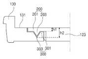 이로 인하여, 도광판(123)은 도면상으로 정의한 z축 방향으로의 유동 또한 완전히 차단되어 고정된다.Due to this, the