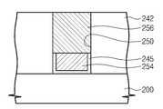 도 7을 참조하면, 도 5c의 제1 금속패턴(254), 제2 금속패턴(256) 및 베리어패턴(245)은 트랜지스터를 구성하는 게이트(212) 및 불순물 영역(203)의 상부와 전기적으로 접속할 수 있다. 이 경우, 상기 제1 금속패턴(254) 및 제2 금속패턴(256)은 콘택 플러그로 작용할 수 있다. 상기 베리어 패턴(245)과 상기 불순물 영역(203) 사이 및/또는 상기 베리어 패턴(245)과 상기 게이트(212) 사이에는 오믹층(216)이 더 개재될 수 있다.Referring to FIG. 7, the