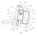 상기 상부 지지대(152a)는 상기 제진판(151)과 제진판(151)의 상부를 지지하며 필터케이스커버(130b)가 회전될 수 있도록 필터케이스커버(130b)의 저면에 형성된 상부고정부(136a)에 결합된다.The