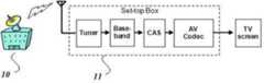 IPTV나 PPV(Pay Per View) 서비스 등은 시청자가 유료 컨텐츠를 구매하고 이를 시청하도록 하는 비즈니스 모델이다. 이러한 서비스는 정당한 대가를 지불한 사용자만이 이용할 수 있도록 CAS (Conditional Access System: 수신제한시스템)등의 DRM (Digital Right Management)을 채택하고 있는 것이 일반적이다. CAS는 컨텐츠의 불법적인 사용자의 접근을 방지하기 위해 사용되는 기술로서, 수신자격이 있는 시청자만이 특정 프로그램을 수신할 수 있도록 송신기에서 데이터를 스크램블링(scrambling)을 하고, 수신 인가를 받은 가입자만이 그 스크램블된 데이터를 디스크램블링(de-scrambling)을 하여 해당 프로그램을 시청할 수 있도록 한다. 도 1a은 CAS를 사용하는 일반적인 시스템을 나타낸다. 도 1a에서와 같이, 일반적으로 CAS는 서비스 제공자(10)가 제공한 세톱박스(Settop Box)(11)에 의해서 구현된다. 물론, TV 자체가 세톱박스 기능을 내장하고 있는 경우도 있다.IPTV and Pay Per View (PPV) services are business models that allow viewers to purchase paid content and watch it. It is general that such a service adopts DRM (Digital Right Management) such as CAS (Conditional Access System) to be used only by a user who paid a fair price. CAS is a technique used to prevent unauthorized users from accessing content. It scrambles data at the transmitter so that only viewable viewers can receive a specific program, and only the subscriber And de-scrambles the scrambled data so that the program can be viewed. Figure 1a shows a typical system using CAS. 1A, a CAS is generally implemented by a