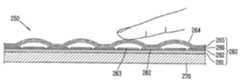 액츄에이터(265)는 각 키에 대응되는 돔 부분(264)을 포함하고 있다. 투광성 액츄에이터(265)는 '투광성 돔 키'라고 불려지기도 한다. 이러한 돔 부분(264)은 투광성의 폴리머 필름을 몰딩 또는 프레싱하는 등의 방법에 의하여 성형할 수 있다(S21). 액츄에이터(265)는 한 장의 투명 필름에 여러 개의 돔 부분(264)을 형성시켜 일체형으로 구현함으로써 제작을 간단하게 하고 제조비용을 절감할 수 있다.The