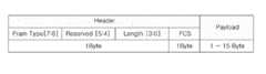 도 6 및 도 7을 참조하면, 제 1 패킷(Packet)은 제어부(180)를 통하면서 네 개의 프레임(Frame)로 분할된다. 이 때, 제 1 패킷(Packet)이 네 개의 프레임(Frame) 분할되면, 제품정보는 네 개의 프레임(Frame)에 분할되어 포함된다. 한편, 제 1 패킷(Packet)과 프레임(Frame)은 설계에 따라 서로 상이하게 형성될 수 있다. 즉, 제 1 패킷(Packet)은 설계에 따라 다섯 개의 프레임(Frame)을 포함할 수 있다. 또한, 제 1 패킷(Packet)은 설계에 따라 여섯 개의 프레임(Frame)을 포함할 수 있다. 제어부(170)는 제 1 패킷(Packet)은 네 개의 프레임(Frame)으로 분할한 후 각 프레임(Frame)을 부호화하여 제 2 패킷이 생성한다. 생성된 제 2 패킷을 살펴보면, 제 2 패킷은 제 1 헤더(Header)와 제 1 페이로드(Payload)로 형성된다. 제 1 헤더(Header)는 2바이트(Bytes), 제 1 페이로드(Payload)는 1바이트(Byte)에서 15바이트(Bytes)의 크기를 갖도록 형성된다. 즉, 제 1 헤더(Header)는 제 2 패킷의 특징을 포함한다. 이 때, 제 1 페이로드(Payload)는 프레임(Frame)의 크기에 따라 가변될 수 있다. 반면, 제 1 페이로드(Payload)는 제 2 패킷에 포함되는 프레임(Frame)의 내용을 포함한다. 제 1 헤더(Header)는 프레임 타입(Frame Type), 페이로드의 길이(Length), 리저브(Reserved) 및 FCS(Frame check sequence)(FCS)를 포함한다. 이 때, 프레임 타입(Frame Type)은 2비트(Bits), 리저브(Reserved)는 2비트(Bits), 제 1 페이로드의 길이(Length)는 4비트(Bits)의 크기를 갖도록 형성된다. 또한, FCS(FCS)는 1바이트(Byte)의 크기를 갖도록 형성된다. 따라서 제 1 헤더(Header)는 2바이트(Bytes)의 크기를 갖도록 형성된다. 상기의 내용을 자세히 살펴보면, 프레임 타입(Frame Type)은 제 2 패킷의 형식을 나타낸다. 프레임 타입(Frame Type)은 제 2 패킷의 형식을 표현하기 위하여 2비트(Bits)를 사용한다. 즉, 프레임 타입(Frame Type)은 6번과 7번 비트(Bit)를 가지고 제 2 패킷의 형식을 표현한다. 예를 들면, 프레임 타입(Frame Type)이 00을 나타내는 경우 제 2 패킷은 제 1 패킷(Packet)의 시작되는 부분을 의미한다. 또한, 프레임 타입(Frame Type)이 01을 나타내는 경우 제 2 패킷은 제 1 패킷(Packet)의 중간 부분을 의미한다. 반면, 프레임 타입(Frame Type)이 11을 나타내는 경우 제 2 패킷은 제 1 패킷(Packet)의 마지막 부분을 의미한다. 따라서 프레임 타입(Frame Type)을 구분함으로써 나중에 제 2 패킷을 취합할 때 상기 각 제 2 패킷의 순서를 구분할 수 있다. 한편, 제 1 페이로드(Payload)의 길이(Length)는 제 1 페이로드(Payload)의 길이를 바이트(Byte) 단위로 나타낸다. 또한, 제 1 페이로드(Payload)의 길이(Length)는 0번, 1번, 2번, 3번 비트(Bit)를 가지고 표현된다. 예를 들면, 제 1 페이로드(Payload)의 길이(Length)가 1의 값을 갖는 경우 제 1 페이로드(Payload)는 1바이트(Byte)의 크기를 갖는 것을 의미한다. 반면, 페이로드의 길이(Length)가 5의 값을 갖는 경우 제 1 페이로드(Payload)는 5바이트(Bytes)의 크기를 갖는 것을 의미한다. 또한, FCS(FCS)는 프레임(Frame)의 에러 유무를 검출한다. FCS(FCS)가 프레임(Frame)의 에러 유무를 검사하는 방법은 CRC-8 방식을 사용할 수 있다. 리저브(Reserved)는 설계시 필요한 내용이 삽입될 수 있다. 리저브(Reserved)는 4번, 5번 비트(Bit)를 가지고 표현된다. 한편, 제 1 페이로드(Payload)는 제 1 패킷(Packet)의 데이터가 부호화된다. 즉, 제어부(170)는 상기에서 설명한 바와 같이 제 1 패킷(Packet)을 네 개의 프레임(Frame)로 분할된다. 각 프레임(Frame)은 제 2 패킷이 형성될 때, 제 1 페이로드(Payload)에 부호화 되어 삽입된다. 또한, 제 1 패킷(Packet)을 분할 한 제 1 페이로드(Payload)는 최소 1바이트(Byte)에서 최대 15바이트(Bytes)로 형성될 수 있다. 따라서 제 1 페이로드(Payload)는 분할되어 최대크기 15바이트(Bytes)의 크기를 갖도록 형성되며, 제 2 패킷은 제 1 헤더(Header)를 포함한 최대크기 17바이트(Bytes)의 크기를 갖도록 형성된다.Referring to FIGs. 6 and 7, a first packet is divided into four frames through the