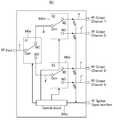 도 12를 참고하면, 본 실시예에 따른 다중 웨이퍼 증착 장치의 플라즈마 처리부(651)는 하나의 전력 인가부(a)와 제1 및 제2 전력 출력부(b, b')를 연결하여 스위칭하는 제1 스위치(645c), 제1 전력 출력부(b)와 두 개의 제3 출력부(e, e')를 연결하여 스위칭하는 제2 스위치(645d), 그리고 제2 전력 출력부(b')와 두 개의 제4 출력부(f, f')를 연결하여 스위칭하는 제3 스위치(645e) 그리고, 제3 출력부(e, e')와 제4 출력부(f, f')에 연결되어 출력되는 전압의 크기와 외부 신호에 의해, 제1 내지 제3 스위치(645c, 645d, 645e)를 제어하는 스플리터 구동 회로(644c)를 포함한다. 본 실시예에 따른 다중 웨이퍼 증착 장치의 플라즈마 처리부(651)의 스플리터 구동 회로(644c)는 제3 출력부(e, e')와 제4 출력부(f, f')에 연결되어 각 제3 출력부(e, e')와 제4 출력부(f, f')로 출력되는 플라즈마 전력을 감지함으로써, 제1 내지 제3 스위치(645c, 645d, 645e)의 동작을 감지하여 정확히 스위칭되는 지 여부 등을 확인하고 외부 신호에 따라 제1 내지 제3 스위치(645c, 645d, 645e)의 동작을 제어하여, 입력된 플라즈마 전원을 원하는 크기로 원하는 제3 출력부(e, e')와 제4 출력부(f, f')로 출력하도록 동작한다.12, the
