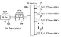 균일한 플라즈마를 발생하기 위해서는 각 반응 공간에 공급되는 플라즈마 전력이 균일하여야 한다. 각 반응 공간에 균일한 플라즈마를 발생하기 위해, 각 반응 공간을 각기 다른 플라즈마 전원에 연결하고, 동일한 플라즈마 전력을 인가할 수 있으나, 이 경우 장비가 복잡해지고 비용이 높아지게 된다.In order to generate a uniform plasma, the plasma power supplied to each reaction space must be uniform. In order to generate a uniform plasma in each reaction space, each reaction space can be connected to a different plasma power source and the same plasma power can be applied, but in this case, the equipment becomes complicated and the cost becomes high.