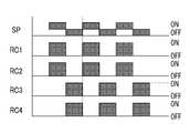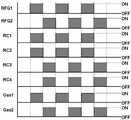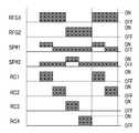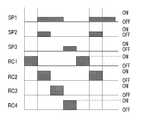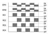 그러면, 본 실시예에 따른 다중 웨이퍼 증착 장치의 플라즈마 처리부(651)의 동작에 대하여 도 12 및 도 13을 참고하여 설명한다. 도 13에서 플라즈마 스플리 터의 제1 내지 제3 스위치(645c, 645d, 645e)의 온/오프는 각기 SP1, SP2, 그리고 SP3로 나타내고, 제1 내지 제4 플라즈마 전극(551, 552, 553, 554)에 인가되는 전압의 온/오프(ON/OFF)를 각기 RC1, RC2, RC3, RC4로 나타낸다.Next, the operation of the
