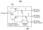 본 실시예에 따른 다중 웨이퍼 증착 장치의 플라즈마 처리부(611, 621)는 각기 플라즈마 스플리터(600b)를 포함한다. 도 6을 참고하면, 플라즈마 스플리터(600b)는 하나의 전력 인가부(a)와 두 개의 전력 출력부(b, b')를 연결하여 스위칭하는 스위치(645a)와 스플리터(600b)의 동작을 제어하는 구동 회로(644a)를 포함 한다. 구동 회로(644a)는 각 전력 출력부(b)에 연결되어 각 전력 출력부(b, b')로 출력되는 플라즈마 전력을 감지함으로써, 스위치(645a)의 동작을 감지하여 정확히 스위칭되는 지 여부 등을 확인하고 외부 신호(splitter signal interface)에 따라 스플리터(600b)의 동작을 제어하여, 입력된 플라즈마 전원을 원하는 크기로 원하는 출력부(b, b')로 출력하도록 동작한다.Each of the
