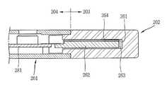 도시에 의하면, 바 형태의 휴대폰 바디는 제1 및 제2 바디(201, 202)를 포함한다. 제1 바디(201)는 바 형태의 휴대폰 바디의 전체적 형상을 형성하며, 제2 바디(202)는 단말기의 부분적인 외관을 형성하도록 제1 바디(201)에 장착된다.According to the embodiment, the bar-shaped cellular phone body includes first and